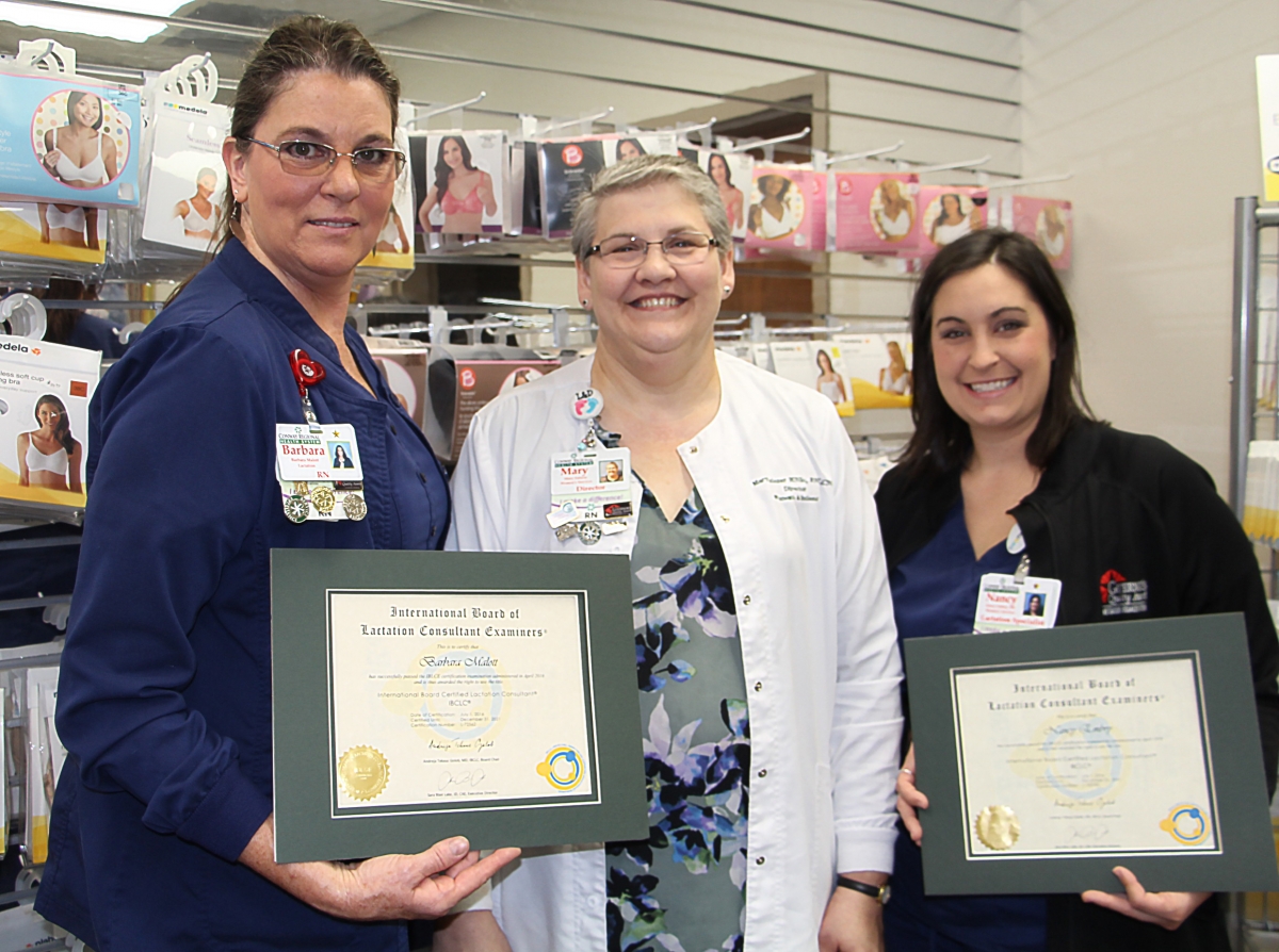 Nancy Embry, RN, and Barbara Malott, RN, of Conway, both lactation specialists in the Conway Regional Women’s & Infants’ Department recently earned their International Board Certified Lactation Consultant credentials (IBCLC).