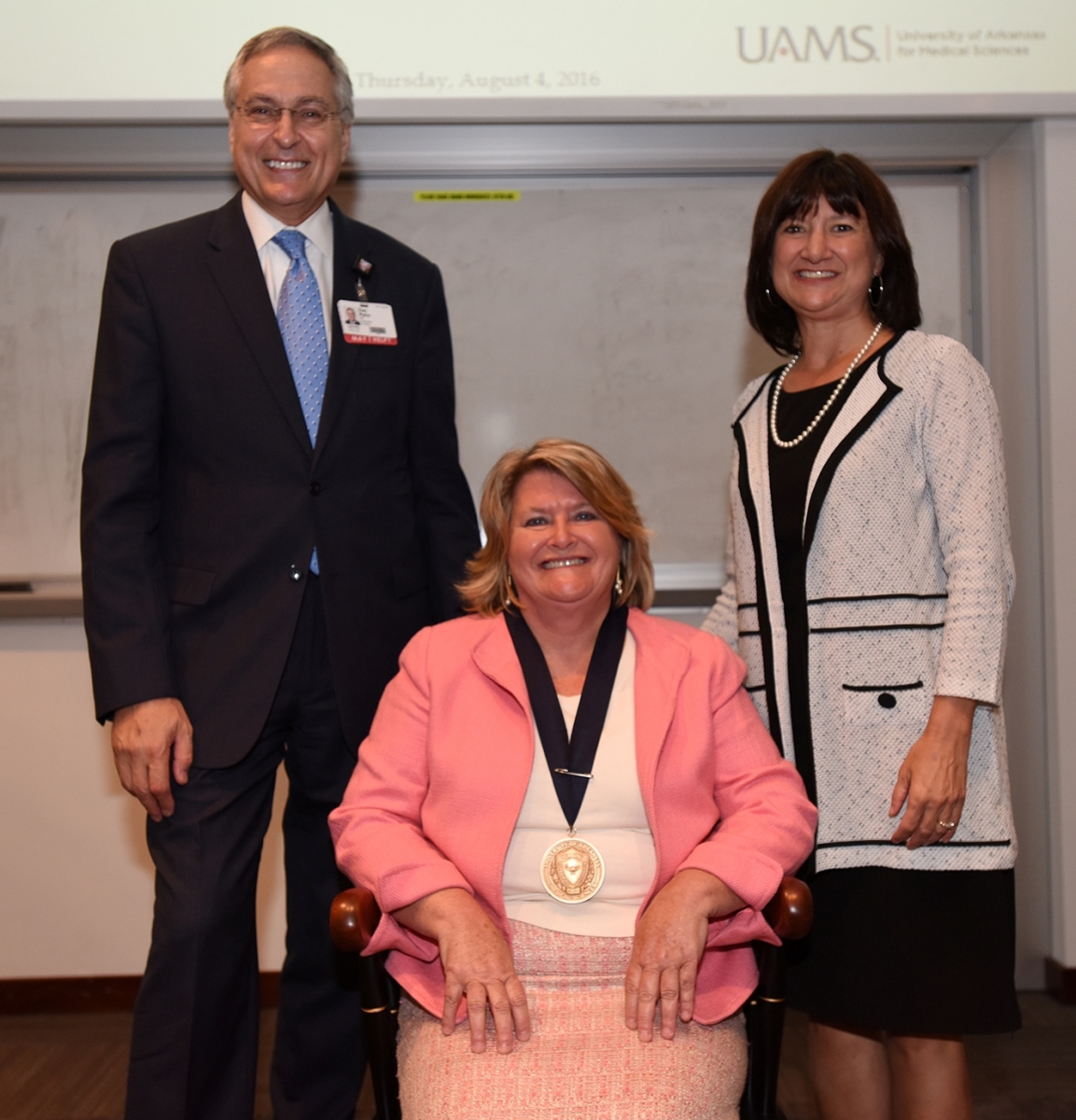 Patricia A. Cowan, PhD, RN, dean of the University of Arkansas for Medical Sciences (UAMS) College of Nursing, was invested Aug. 4 in the Linda C. Hodges Dean’s Chair.